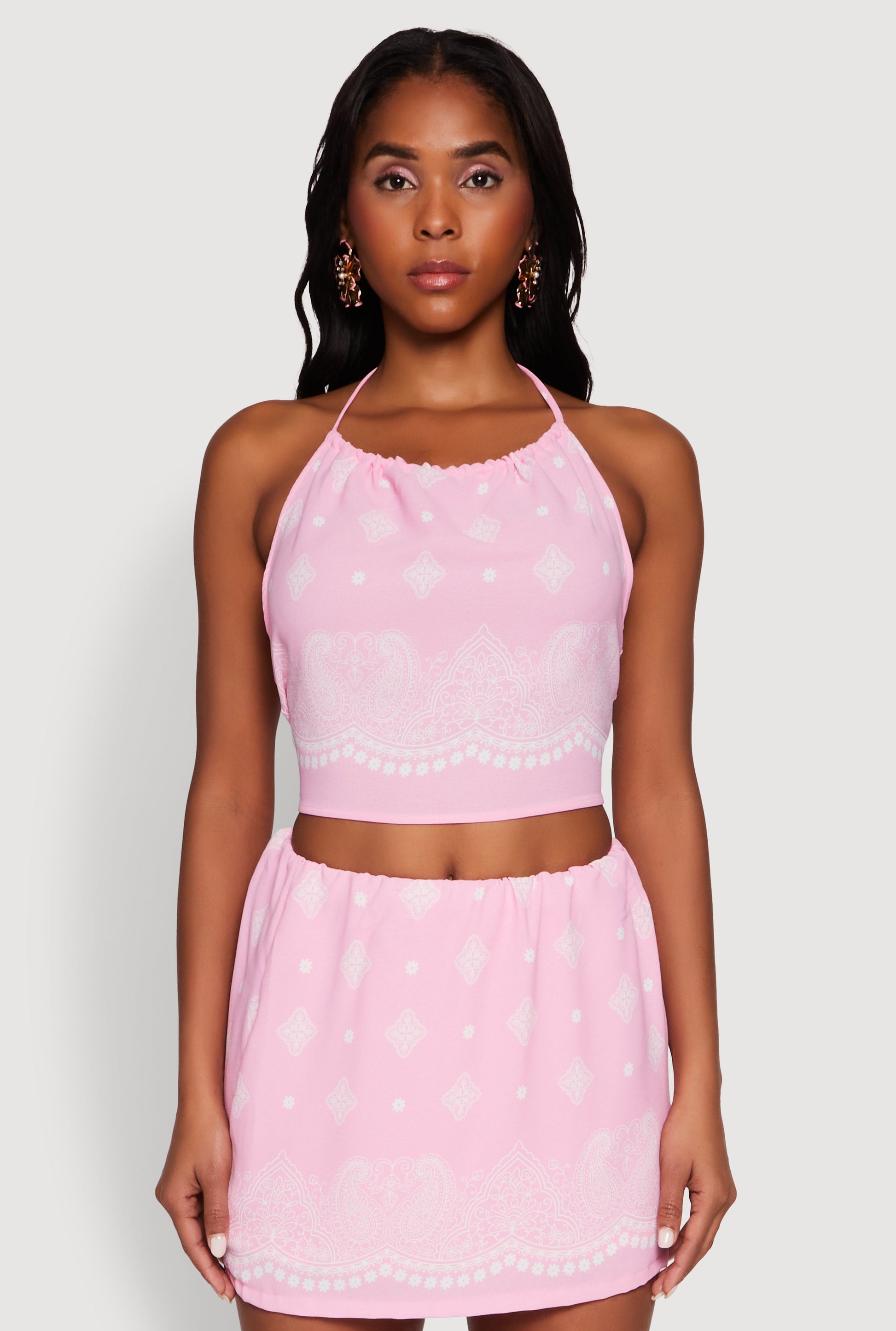 Bandana Print Cropped Halter Top