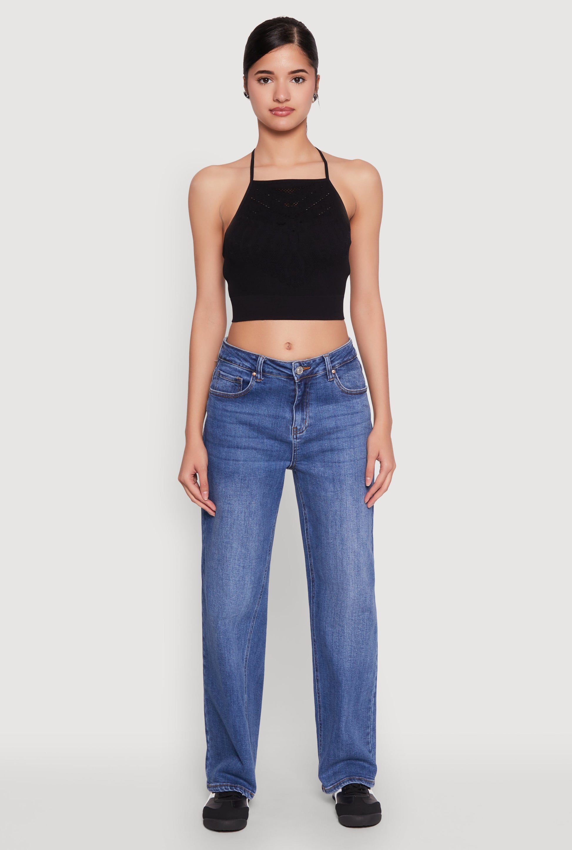 - Cropped hem perfect for pairing with high-waisted styles