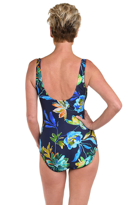 Make a splash in this Maxine one-piece swimsuit! Featuring a flattering v-neckline and slimming side body shirring, this swimsuit offers tummy control lining for a sleek silhouette. Its gorgeous floral print adds a touch of feminine elegance, making this maillot bathing suit perfect for your next beach getaway.