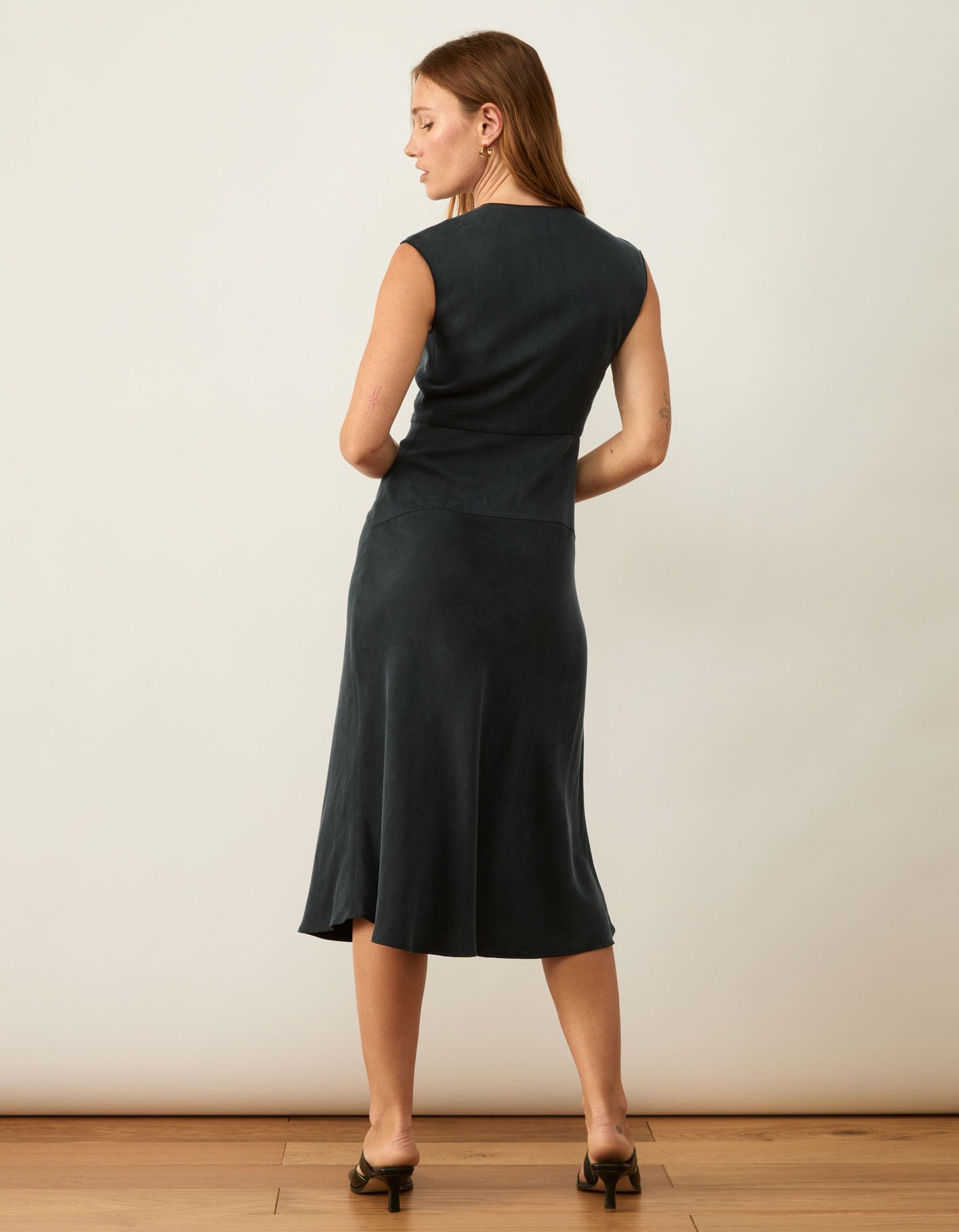 Put it in your calendar. This sleeveless midi dress makes everyday an event with its innovative adjustable neckline. Zip it up for work, or keep it open for formal occasions or strolls around the park where you just want strangers to think, 'Who is she?'