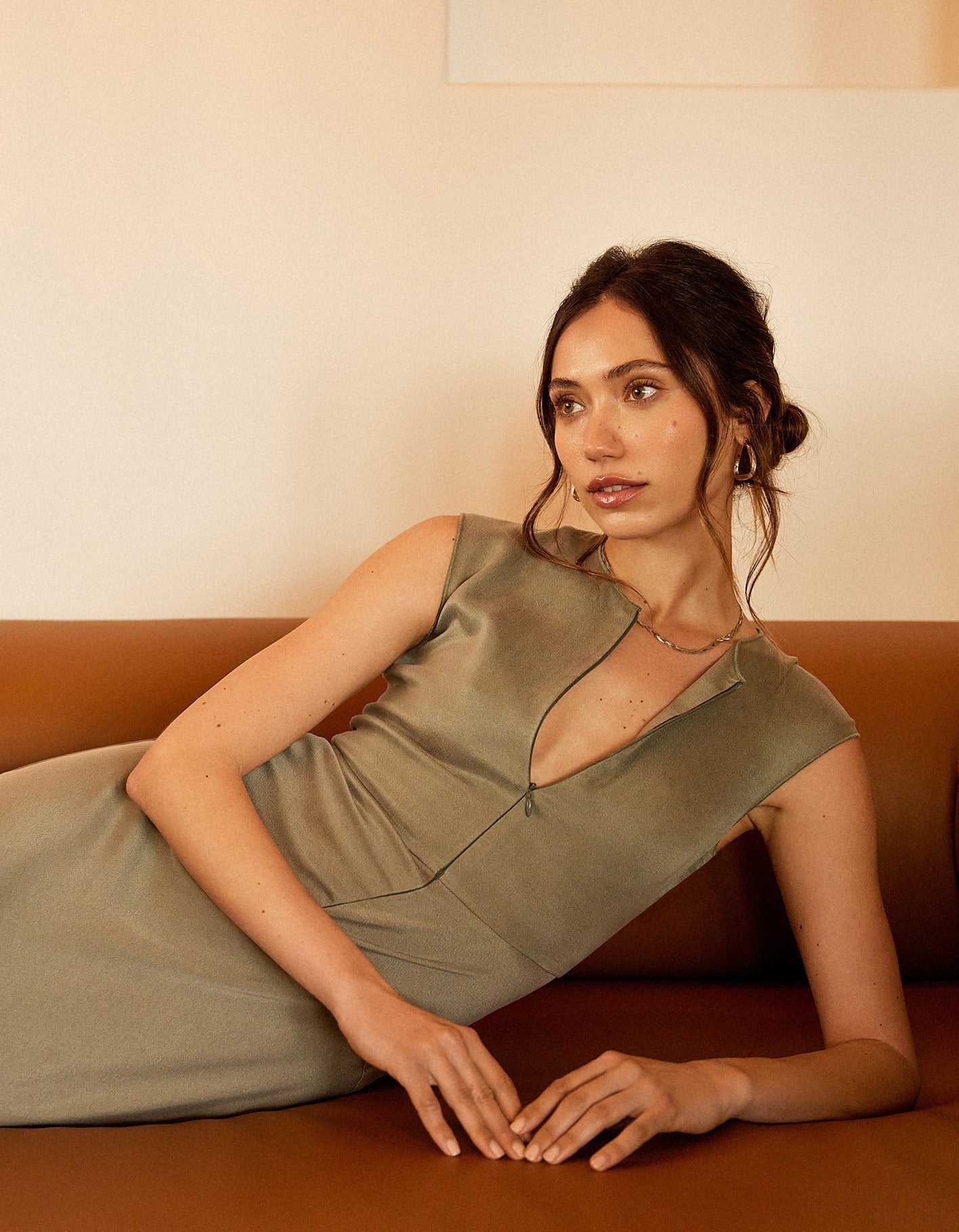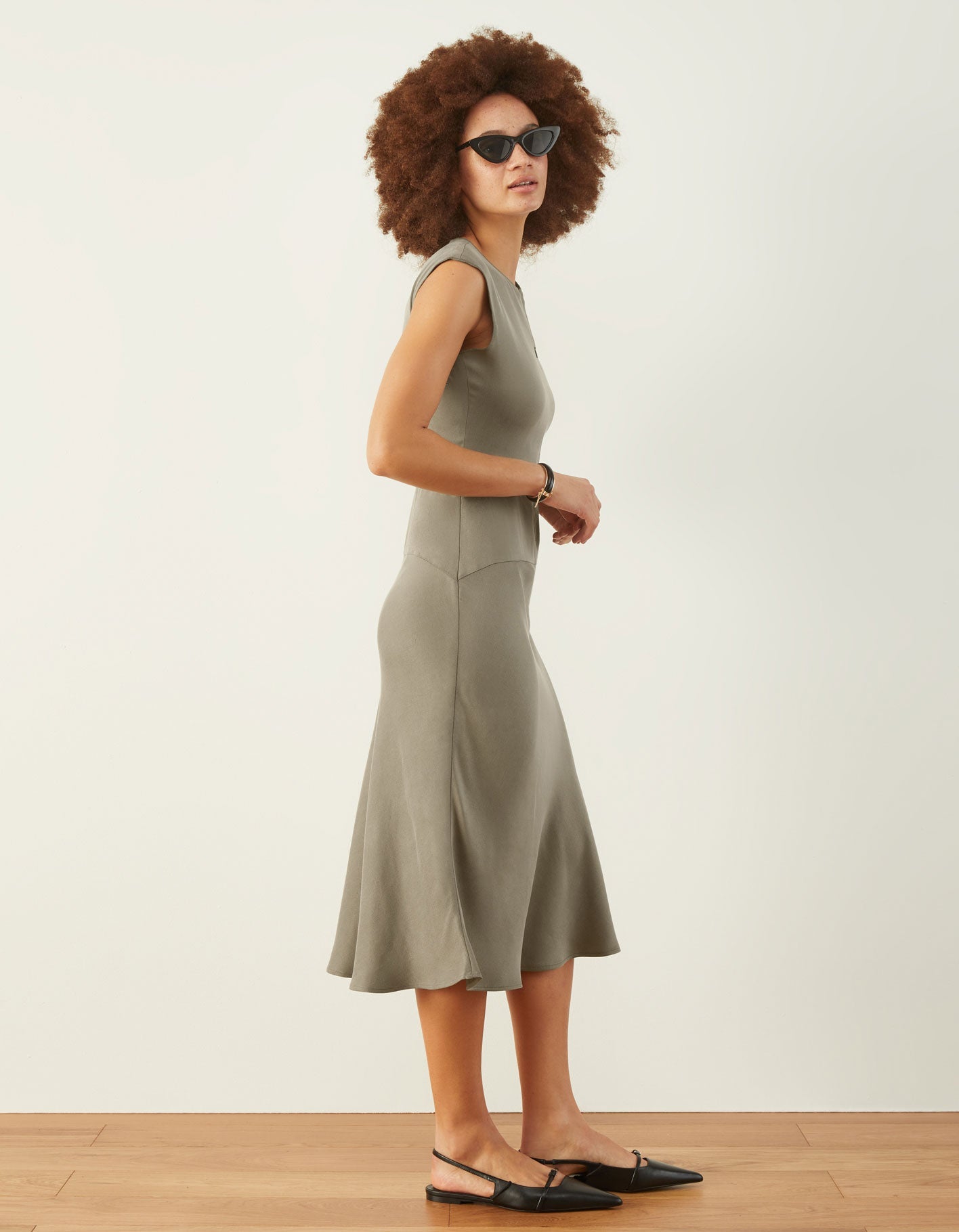 Put it in your calendar. This sleeveless midi dress makes everyday an event with its innovative adjustable neckline. Zip it up for work, or keep it open for formal occasions or strolls around the park where you just want strangers to think, 'Who is she?'